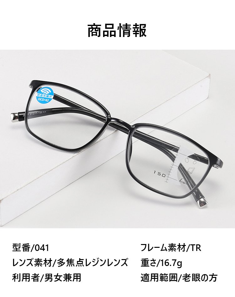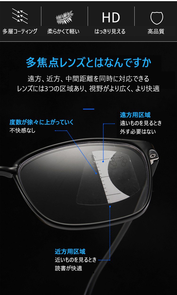【ブルーライトカット遠近両用老眼鏡】ブルーライトカット、耐久性、遠近両用