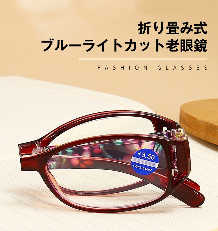 【ブルーライトカット老眼鏡】折り畳み可能、快適、軽い、コンパクト