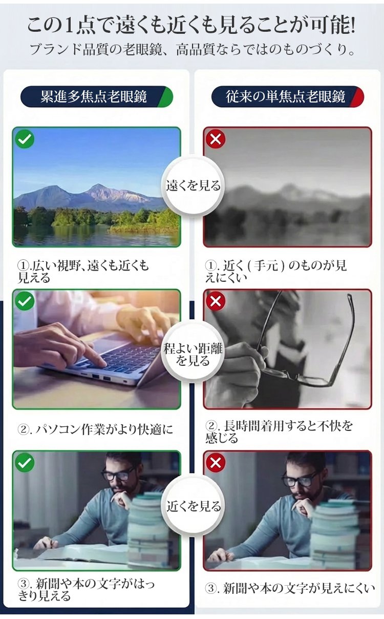 リムレスオートフォーカス老眼鏡