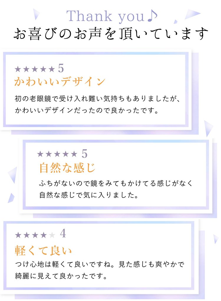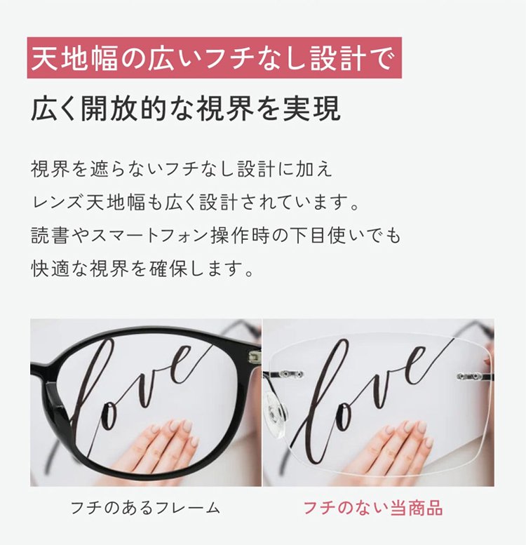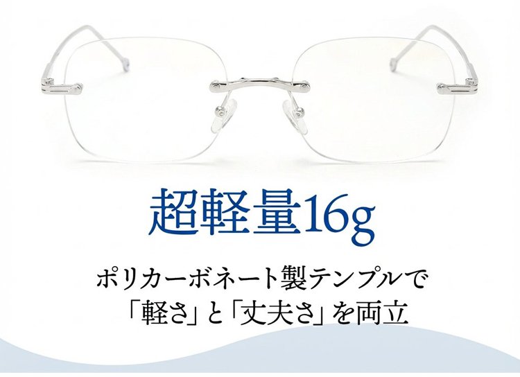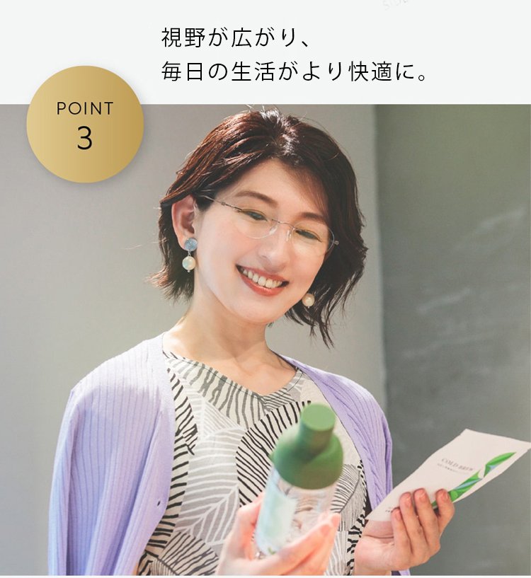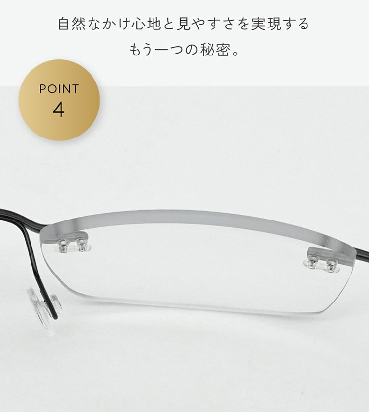 一本で近くから遠くまで、幅広い度数に対応します。 つけていることを忘れるほど軽い、超軽量設計(約5g)。