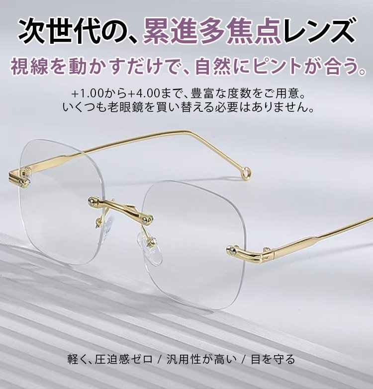 日本の眼科医療技術と共同開発し、ドイツで特許を取得した最新の「累進多焦点レンズ」を採用。