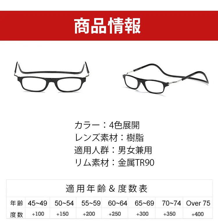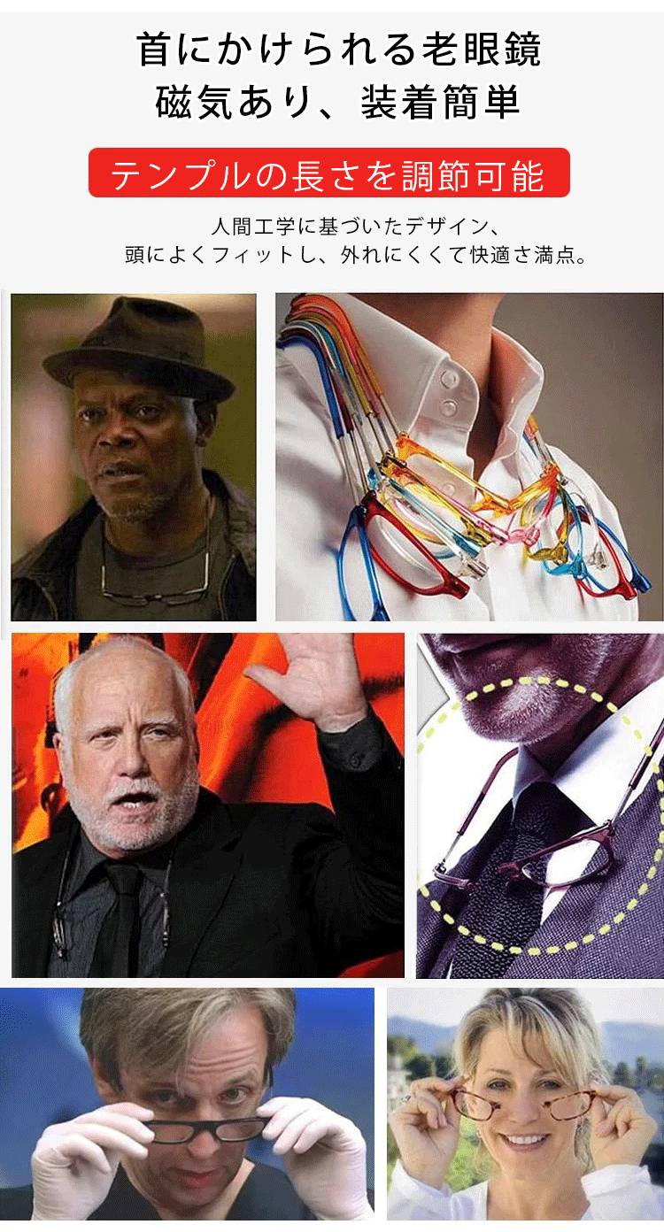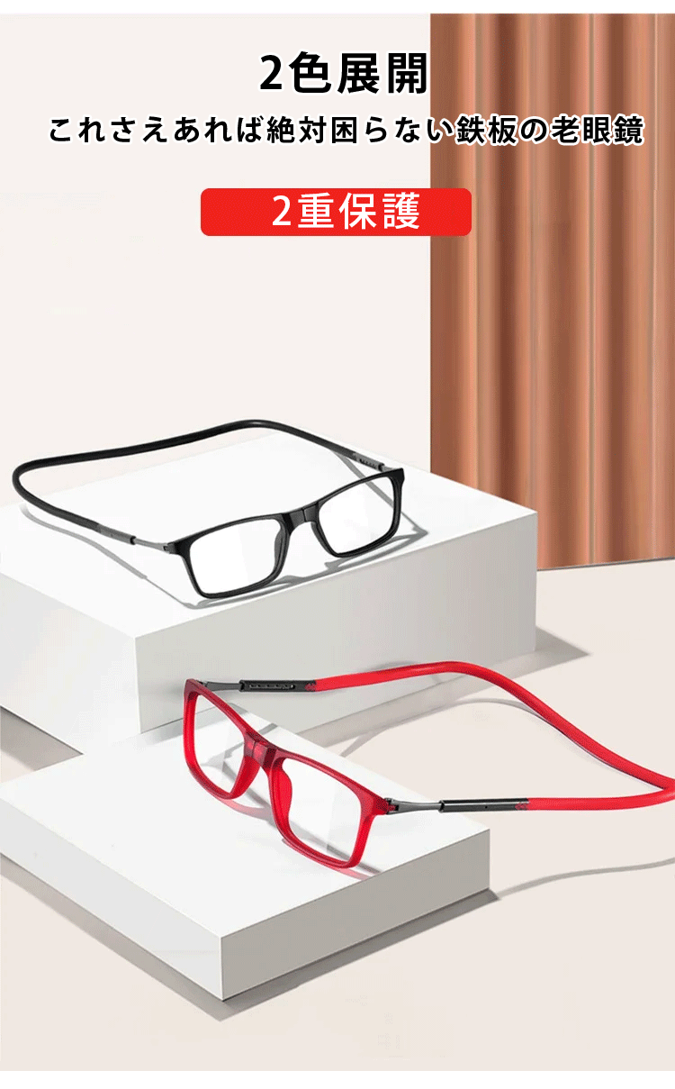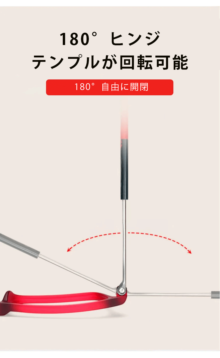 ブルーライトカット、耐キズ、長さ調節可能、快適な装着感、コンパクト