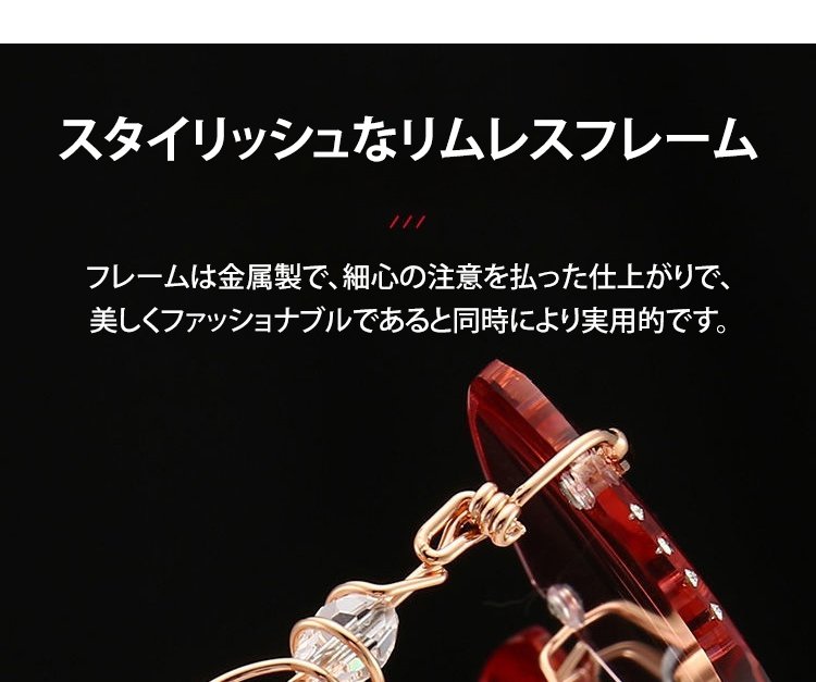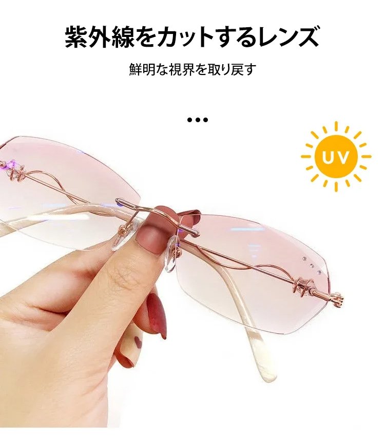 つけるだけで気品を演出し、顔型を整えます。グラデーションピンクのレンズは、素顔でも素敵に見え、10歳若く見えます!