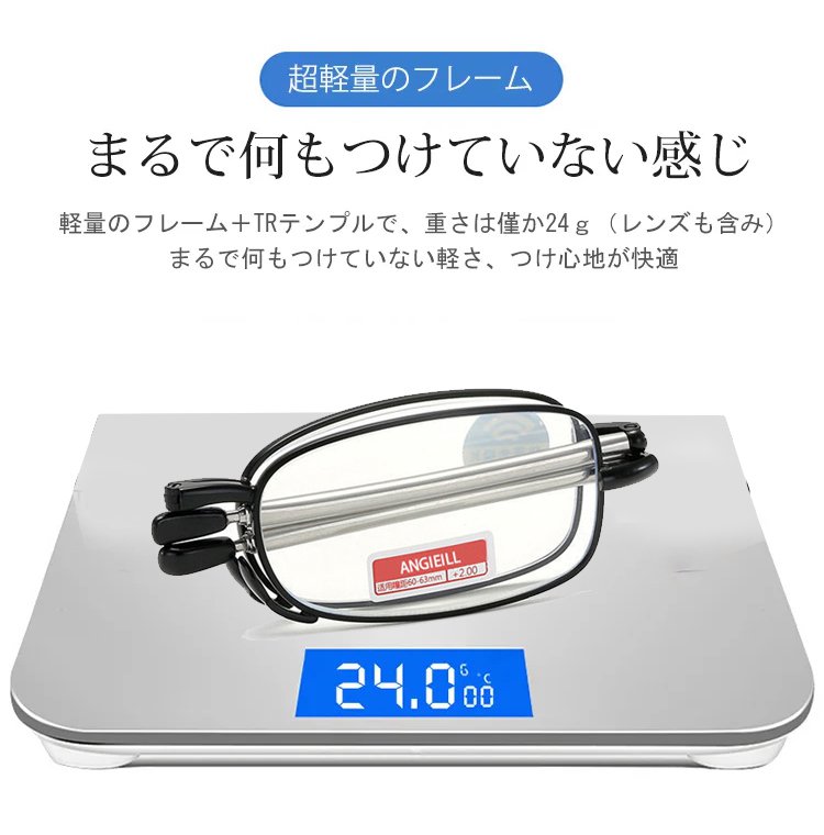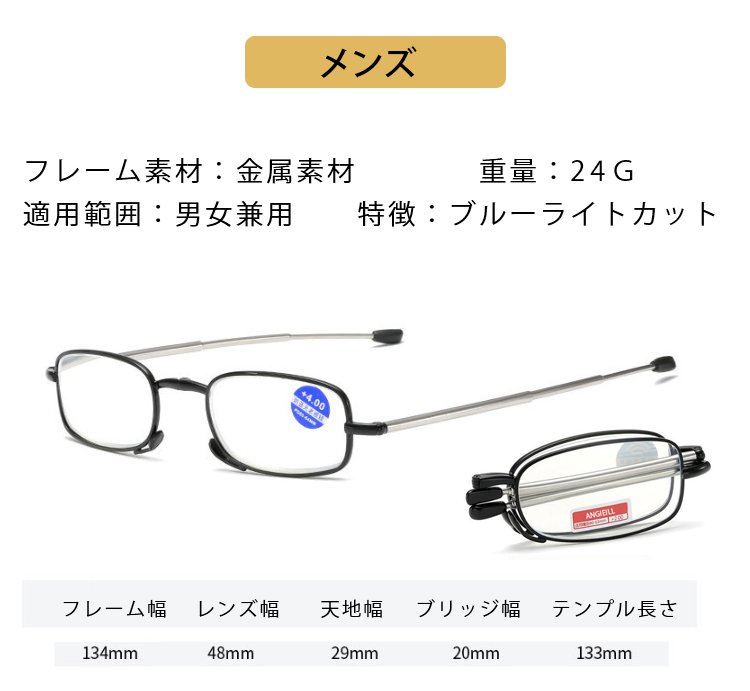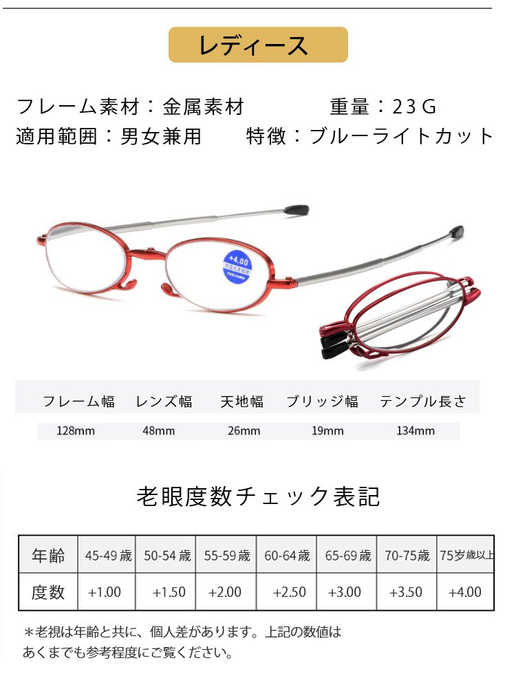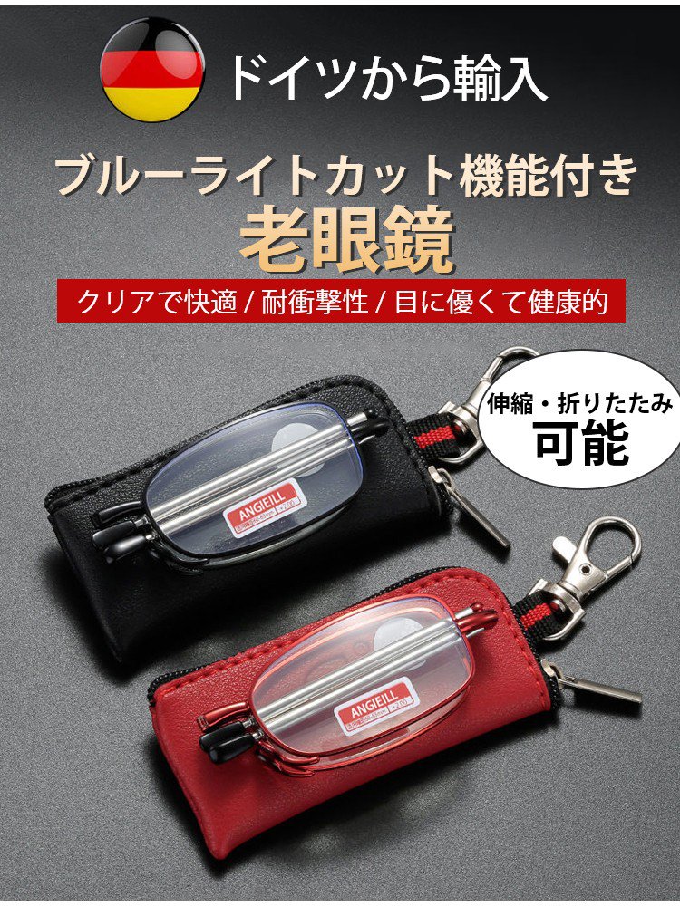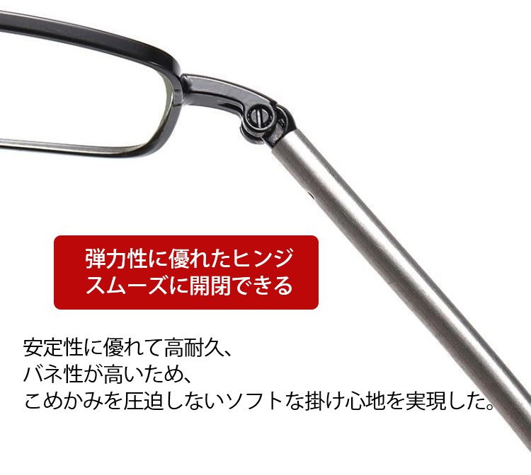【収納ケース付き折りたたみ式老眼鏡】伸縮・折りたたみ可能 コンパクト、ブルーライトカット、耐磨耗性抜群、クリアな視界を実現、快適なつけ心地