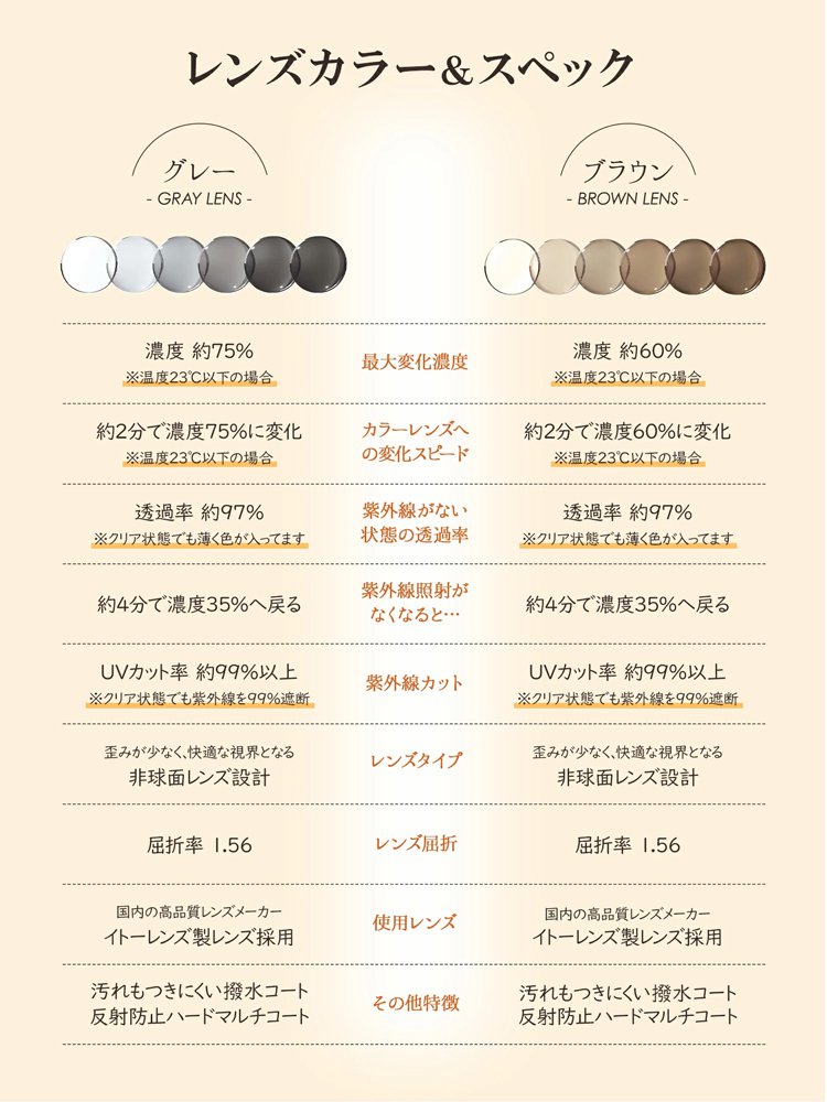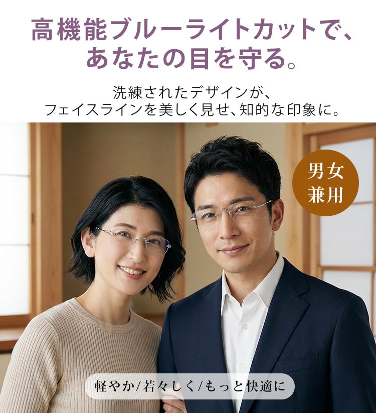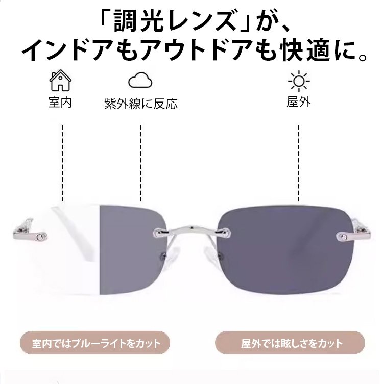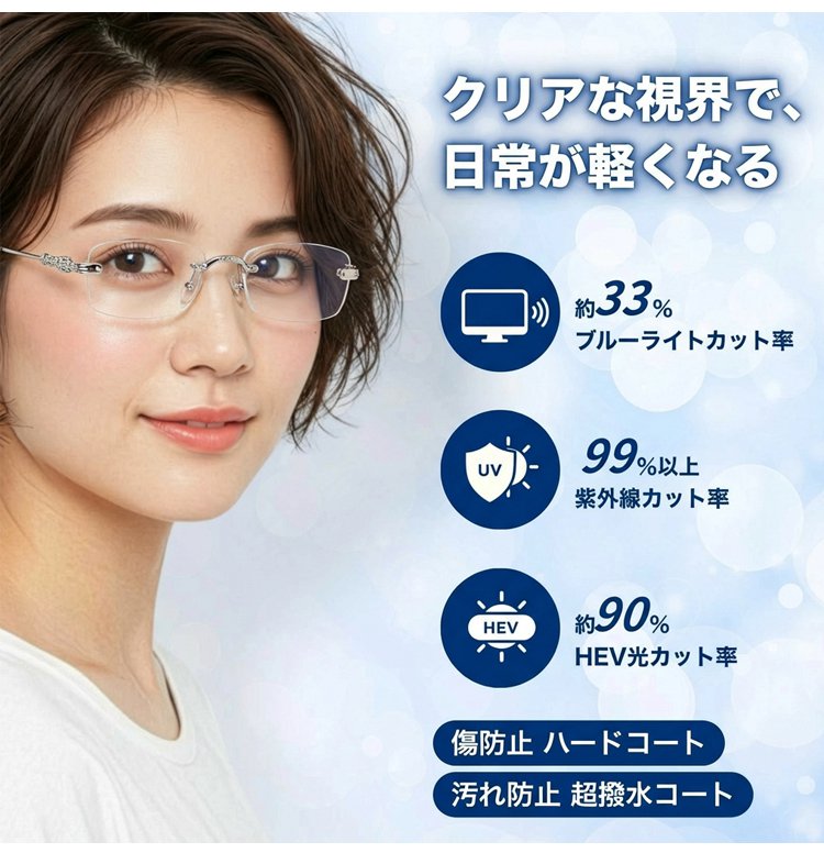 ブルーライトカットと調光機能を搭載し、度数が変化しても自動で馴染むため、頻繁な買い替えが不要に。これ一本で長く愛用いただけます。