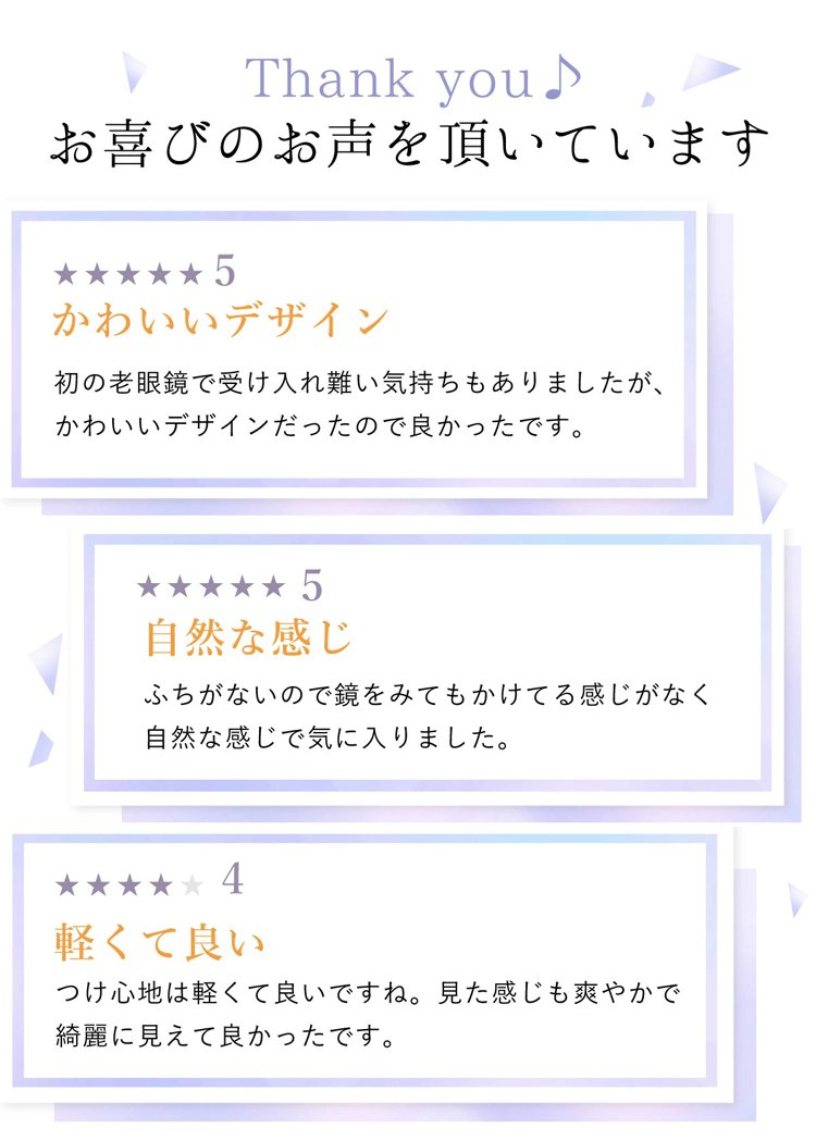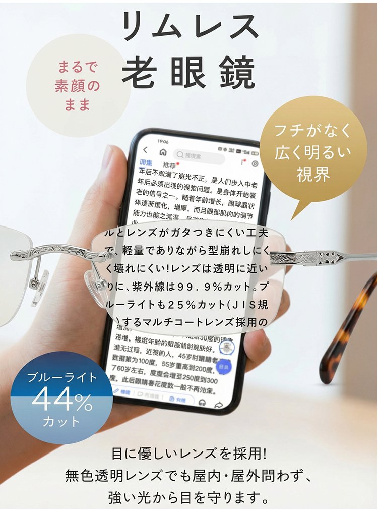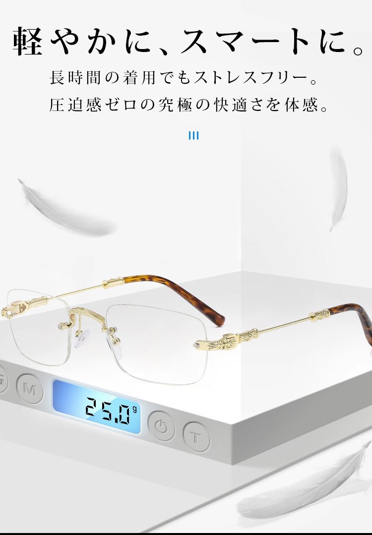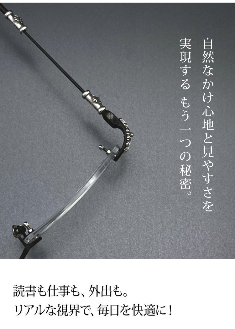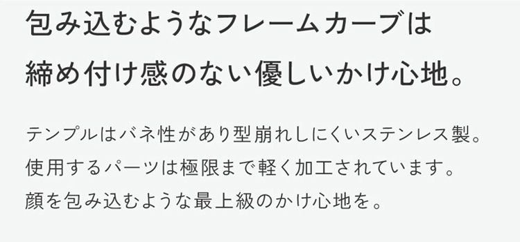 一本で近くから遠くまで、幅広い度数に対応します。 つけていることを忘れるほど軽い、超軽量設計(約5g)。