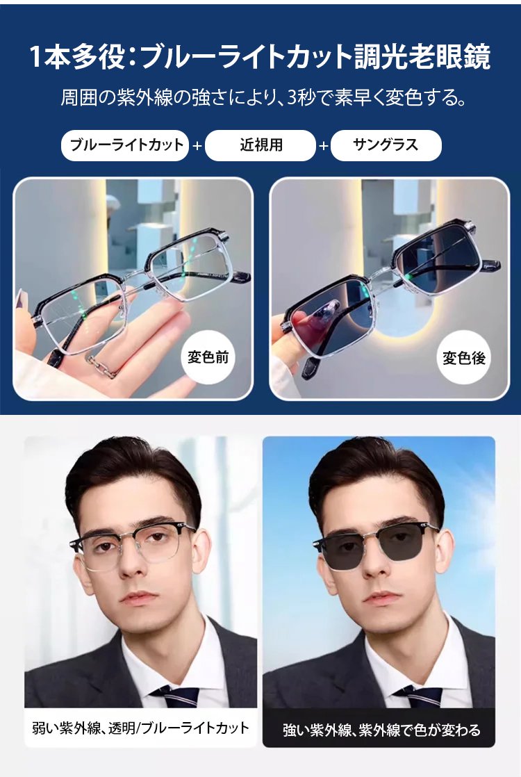 ブルーライトカット調光老眼鏡